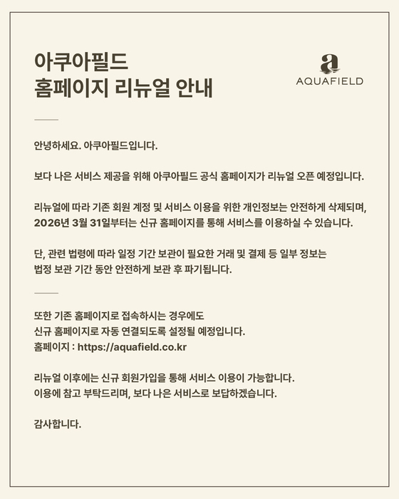 아쿠아필드의 모토와 홍보영상을 만나 보실 수 있습니다.